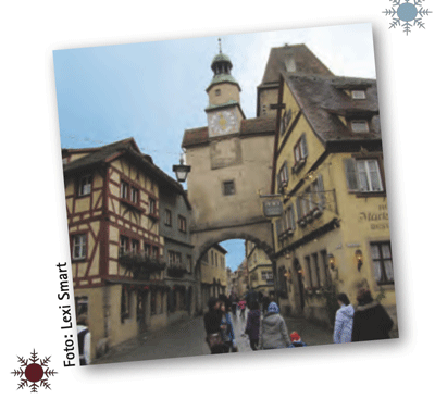 Von dort über die Nebenbahn in die alte Reichsstadt Rothenburg ob der Tauber. Auf dem Reiterlesmarkt können Sie bei Glühwein oder Punsch und altfränkischem Gebäck einen der reizvollsten Weihnachtsmärkte Frankens erleben.