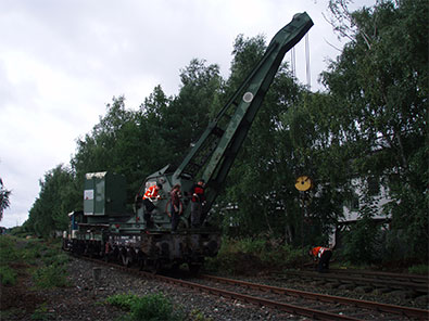 10-Tonnen Kran wurden die Weiche und einige Gleisjoche bereits in Position gebracht und wie im Umbauplan vorgesehen in der richtigen Reihenfolge abgelegt. |