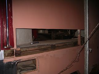 Die großen Maschinenraumfenster mussten ausgebaut werden um Beschädigungen zu vermeiden und um das darunter liegende Blech bearbeiten zu können.