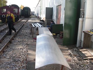 Die neu angefertigten Bleche und gekanteten Teile für die Batteriekästen sowie Hutprofile und Z-Profile für die Lokkarosserie wurden gründlich gereinigt und grundiert.