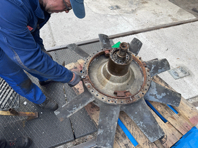 | In der kalten Jahreszeit Anfang 2025 war wieder Zerlegen angesagt. So wurde die zweite Kühlergruppe in ihre Einzelteile für die Aufarbeitung zerlegt und befundet. |