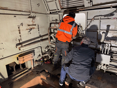 | Auch in der Lok wurden nach Dokumentation alle Rohrleitungen im zweiten Maschinenraum demontiert. Die Instandsetzung von Profilen am Kühlerrahmen wurde begonnen. | ||||||||